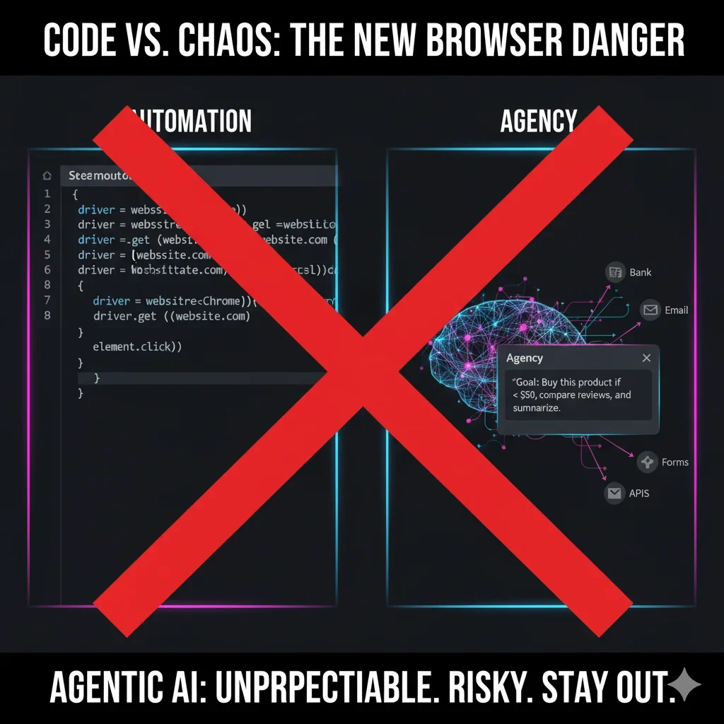 Why? Because they aren’t just browsers. They are agents that can act on your behalf, often before the safety rails are even built.